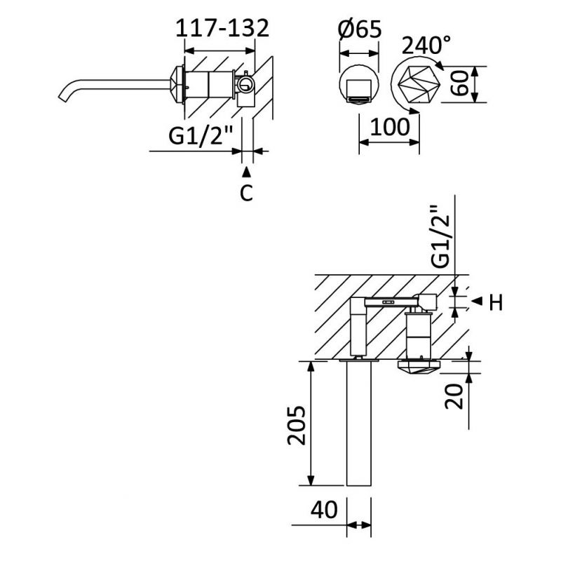 Bruma Utopia 2-reikäinen progressiivinen seinään asennettava pesuallashana Kromi Tuotekoodi: 183 851 0CR