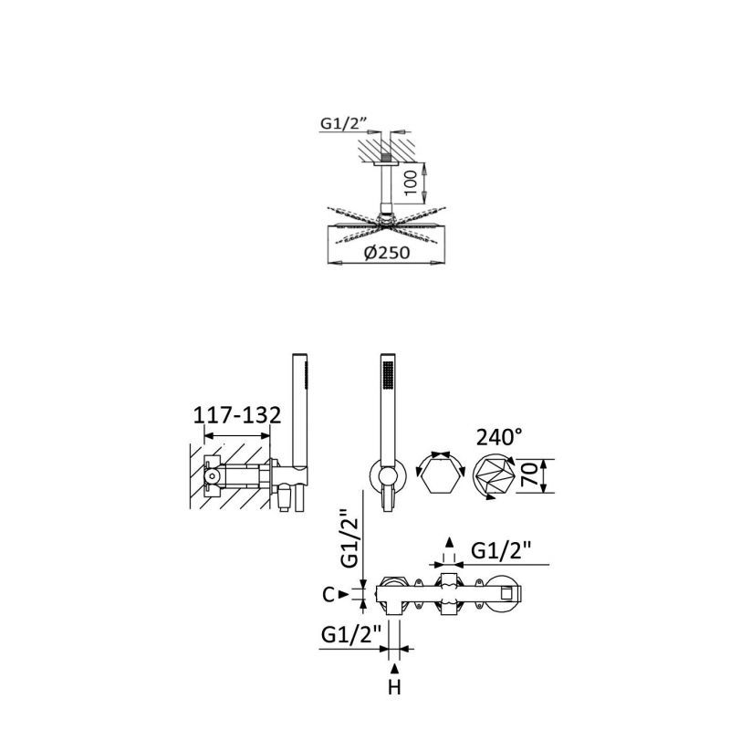 Bruma Utopia Progressiivinen suihkusetti, jossa on suihkupää Ø250 mm ja käsisuihkusetti, kromi Tuotekoodi: 183 752 0CR