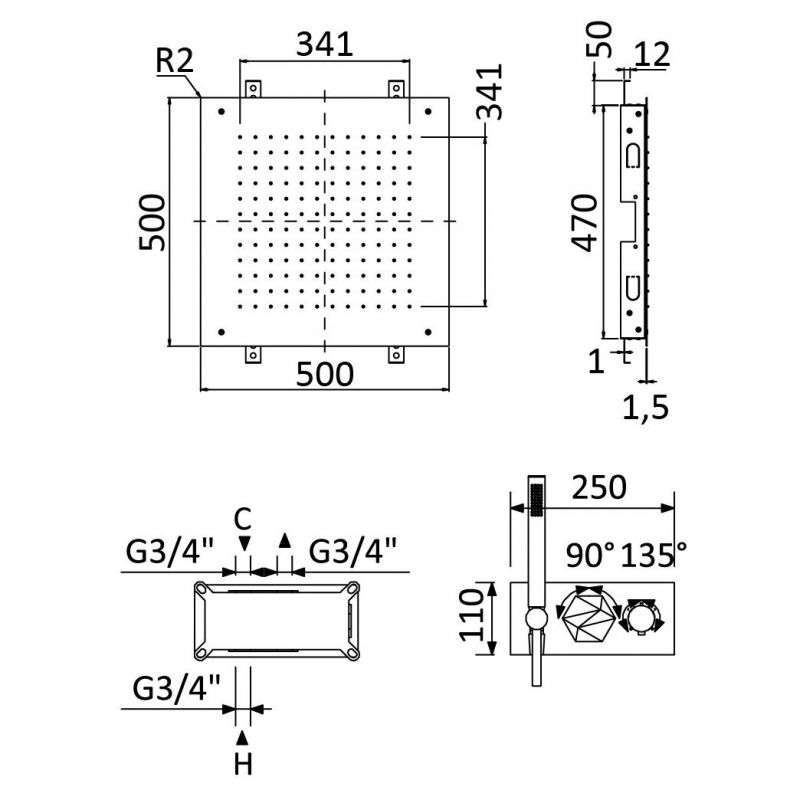 Bruma Utopia Termostaattinen suihkusetti, jossa on pääsuihku (Sade) ja käsisuihku, kromi Tuotekoodi: 183 787 1CR
