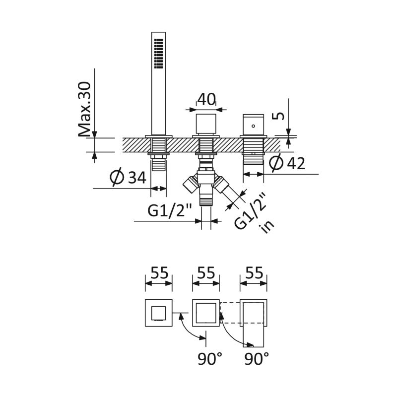 Deck monunted single lever shower mixer, with handshower set Quadra - 2 outlets Tuotekoodi: 182 501