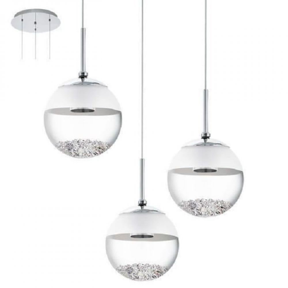Tyylikäs jugendtyylinen valaisin, joka on esitetty vedellä täytetyn pallon muodossa. Valaisimen suunnittelua täydentävät koriste-elementit, joiden väri on läpinäkyvä