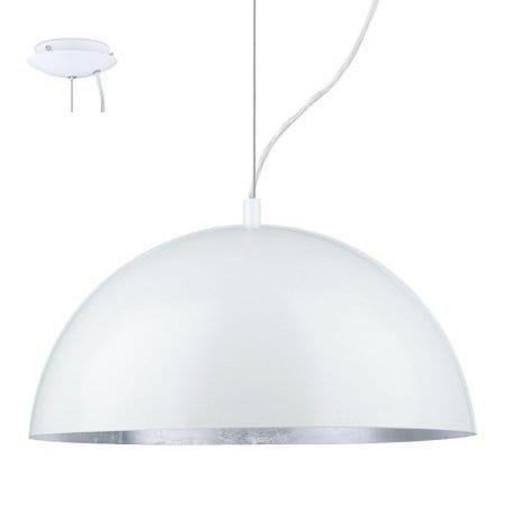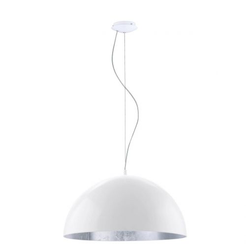 Luova moderni kattokruunu puolipallon muodossa. Pohjaväri on valkoinen täydellisessä harmoniassa hopean varjostimen kanssa, johon varjostin on valmistettu