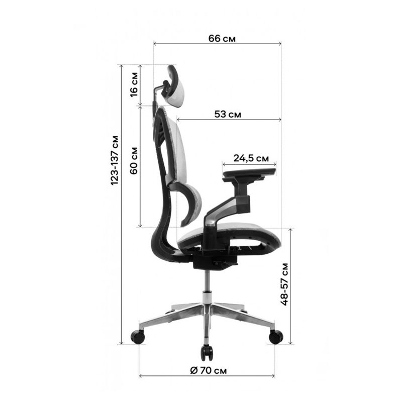 Tuolin selkänoja toistaa selkärangan muodon, joten se luo oikeanlaisen tuen ja lievittää jännitystä. Alaselässä on erityinen tuki. Selkänojaa on mahdollista kallistaa 90-140 astetta. Verhoilussa käytetään kestävää verkkoa, joka ei estä kehoa hengittämästä.