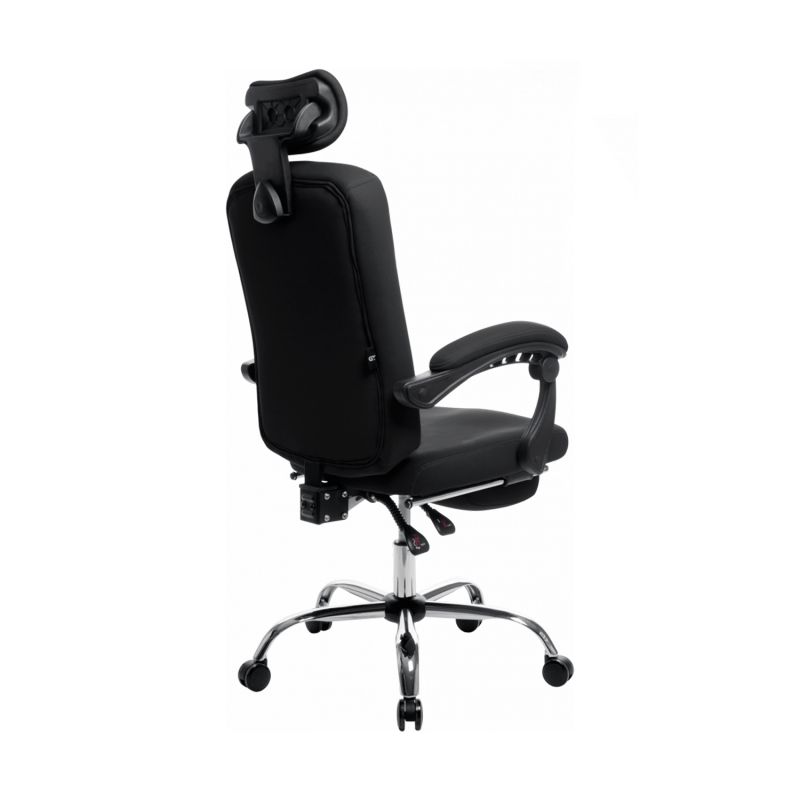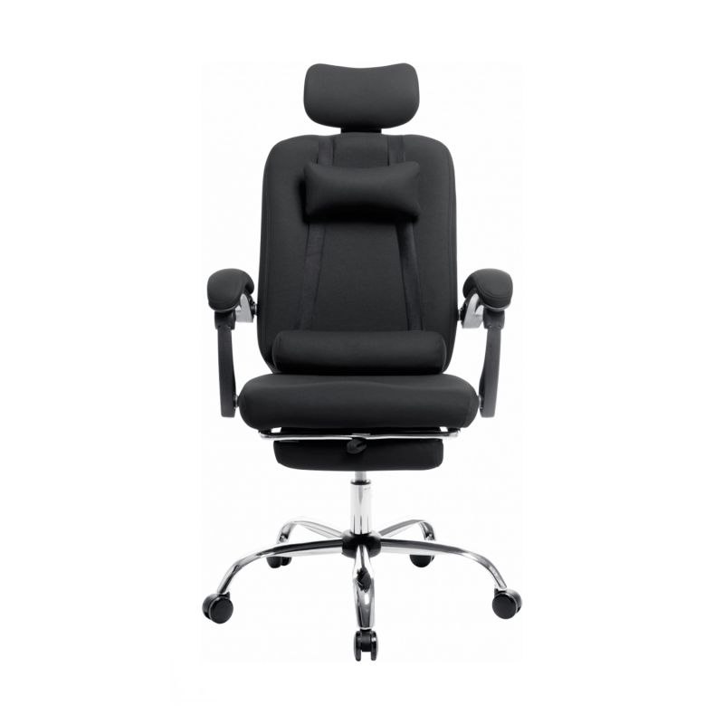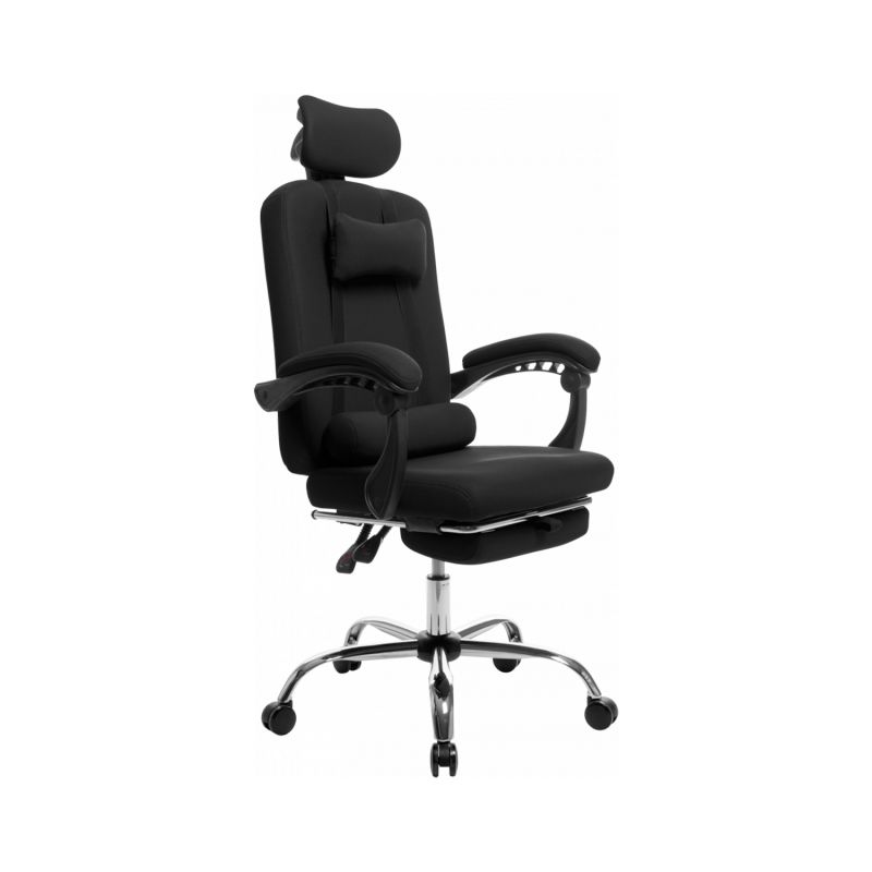 Selkänoja voidaan kallistaa 90° - 140°. Käytä tätä varten vipuja, jotka sijaitsevat sivulla istuimen alla. Pehmeät irrotettavat tyynyt tukevat niskaa ja alaselkää. Ne lisäävät mukavuuttasi ja auttavat lievittämään kohdunkaulan ja lannerangan lihasten jännitystä. Istuimen alla on jalkatuki. Voit työntää sen ulos, kallistaa selkää ja rentoutua mukavassa asennossa.