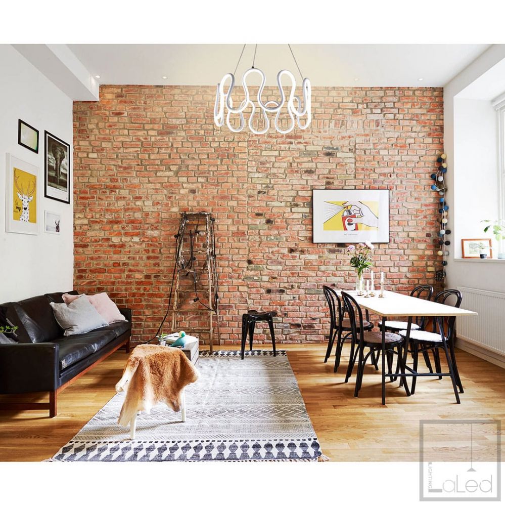 Nykyaikaisessa LED-riippuvassa kattokruunussa on pyöreä muoto, jonka halkaisija on 45 cm