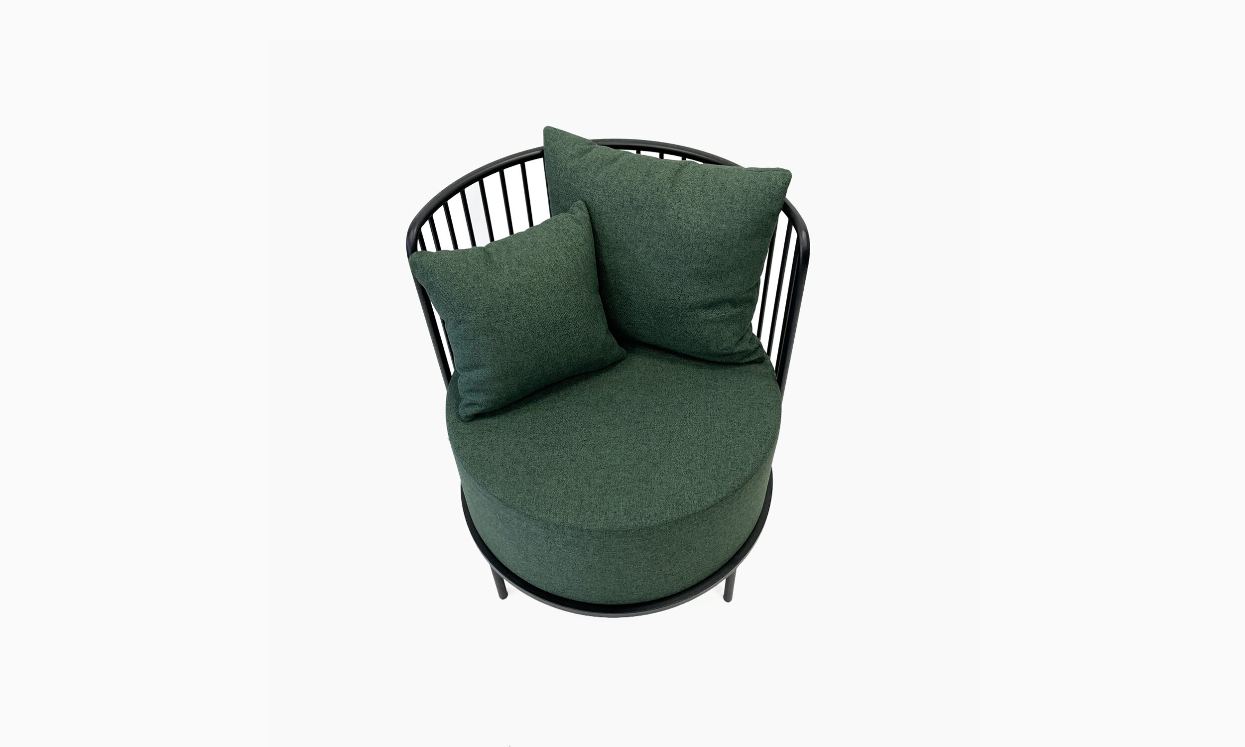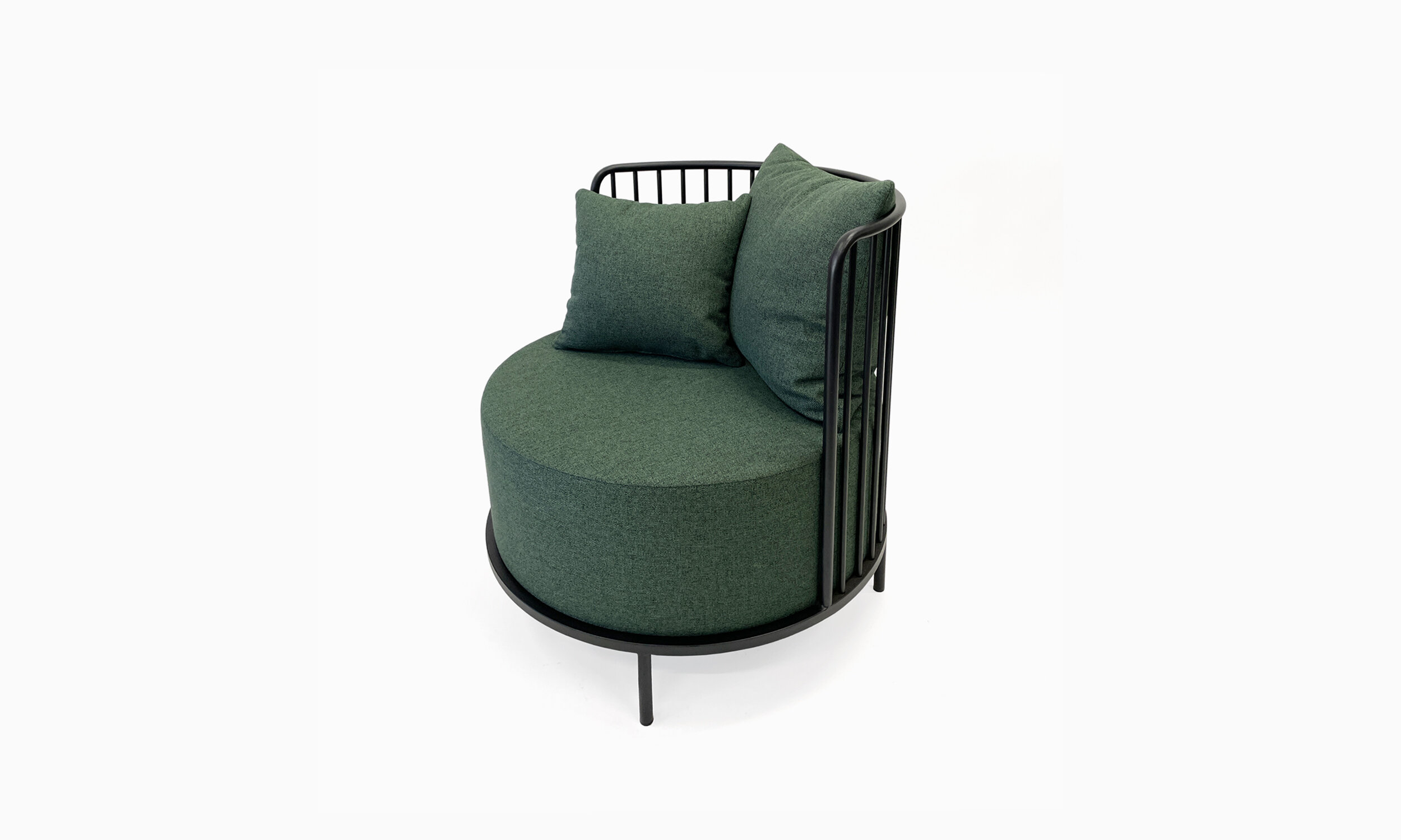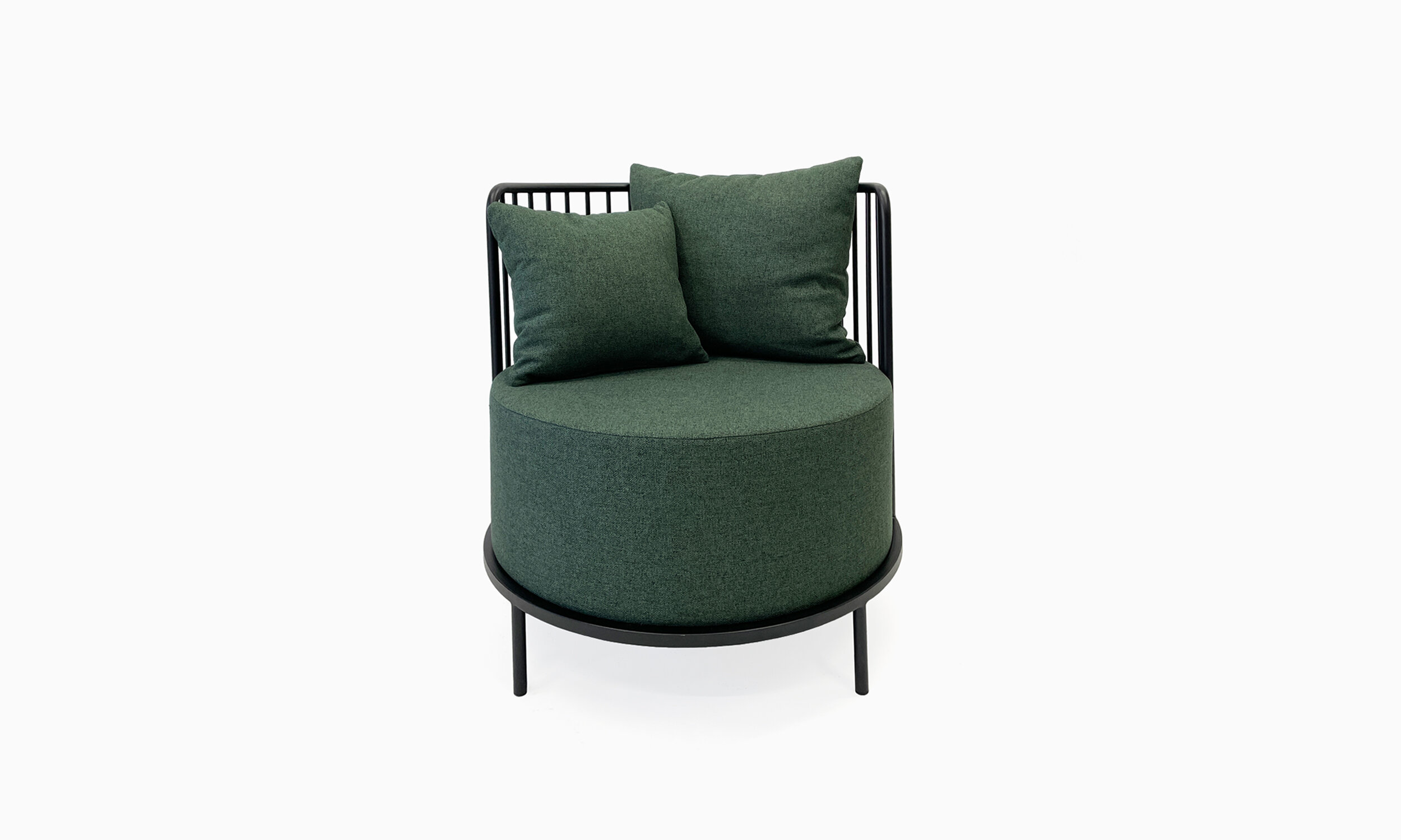 Karua metallirunkoa täydentävät pehmeä istuin ja muhkeat tyynyt. Metalli on maalattu jauhemaalilla.