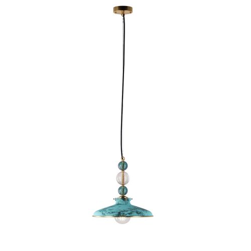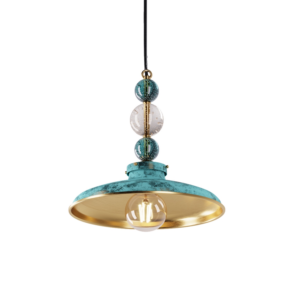 Tyylikäs jugendlamppu, messinkiripustuksen muodossa lasipalloilla