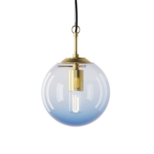Tyylikäs messinkilamppu lasipallomaisella varjostimella. Itse plafonissa on sininen sävy. Tämä on hyvä vaihtoehto keittiöön ja ravintolaan, joka antaa erityistä viehätystä