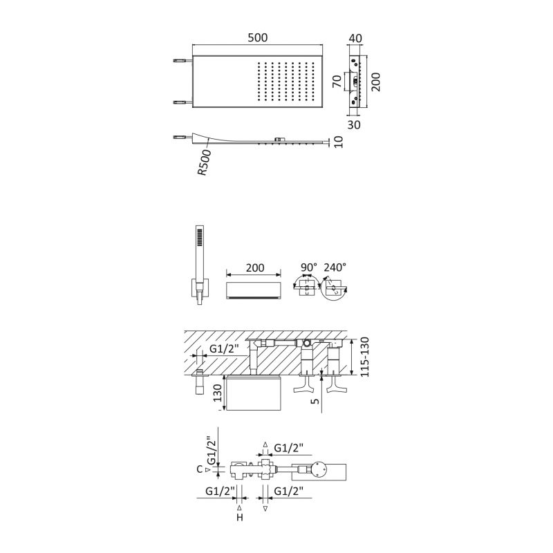 Progressive concealed bath-shower set, with shower head Line, Quadra handshower set and cascade Flat bath spout Tuotekoodi: 192 334