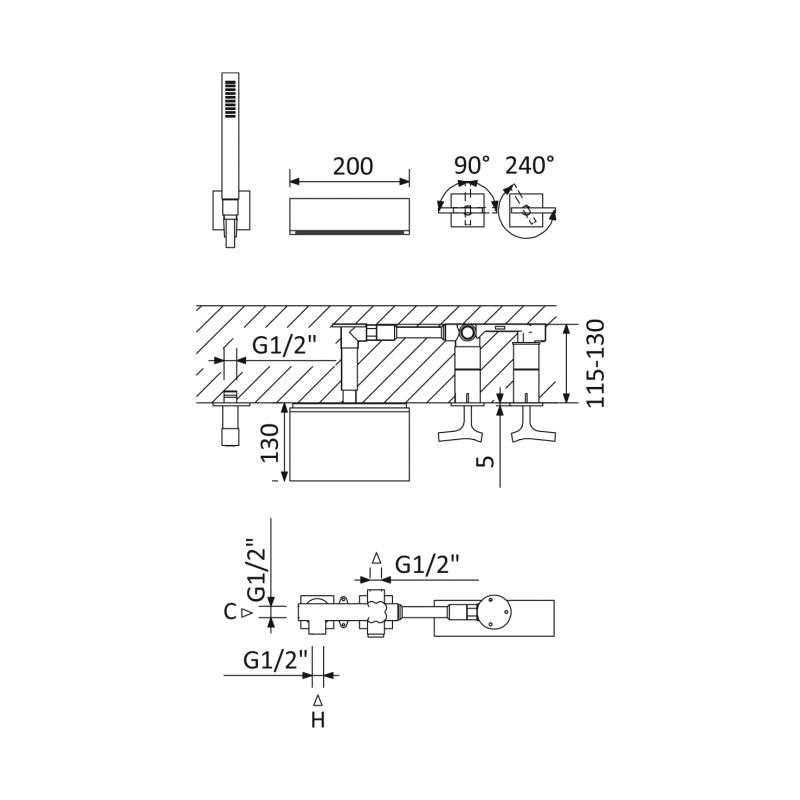 Progressive concealed single lever mixer, with Flat cascade bath spout and handshower set Quadra" Tuotekoodi: 192 102